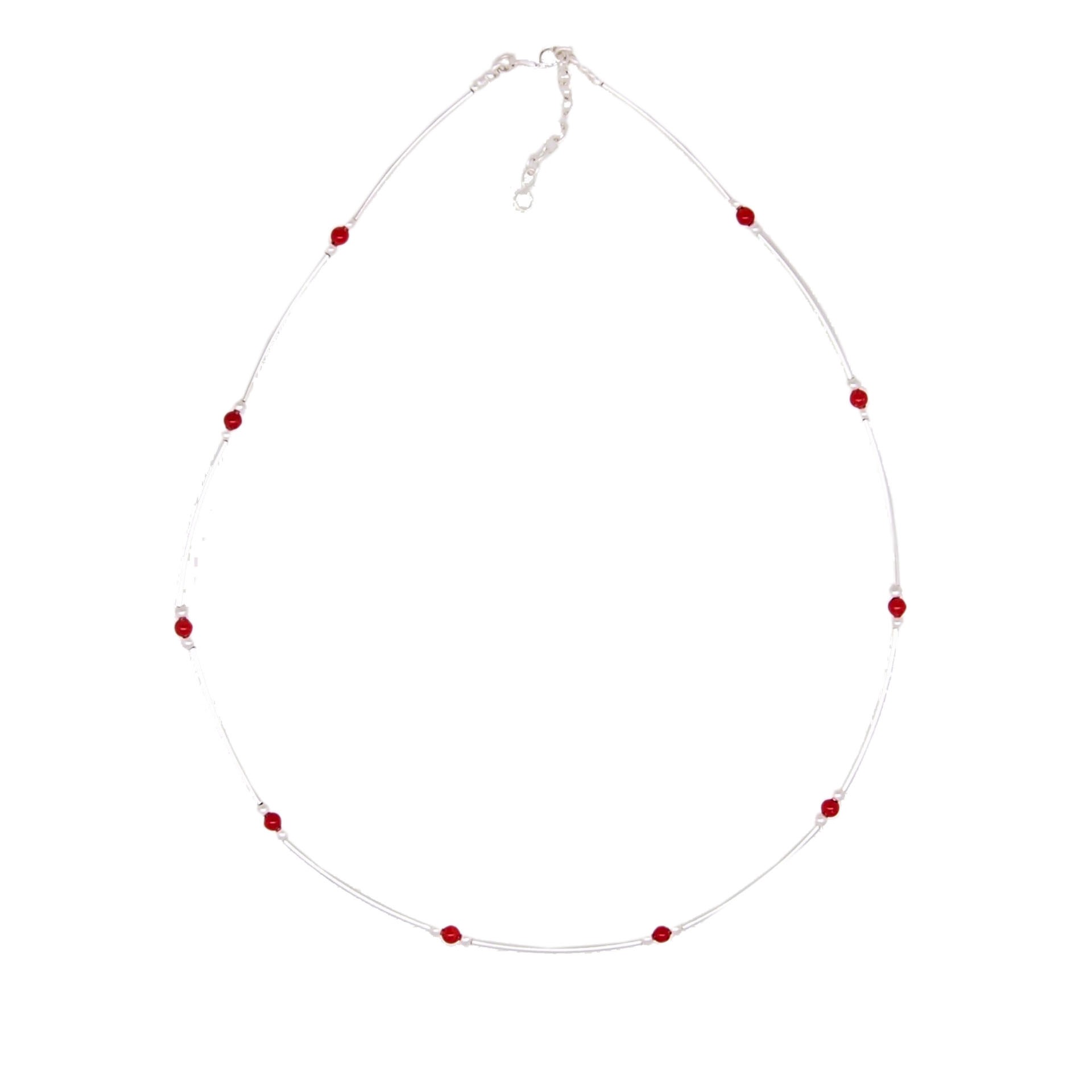 Ce collier est composé de perles en corail rouge de Méditerranée et de boules en argent 925 séparées par des tubes intercalaires en argent 925. Le tout monté sur un câble en acier. Chic et discret, ce bijou est parfait pour donner du style à toutes vos tenues.