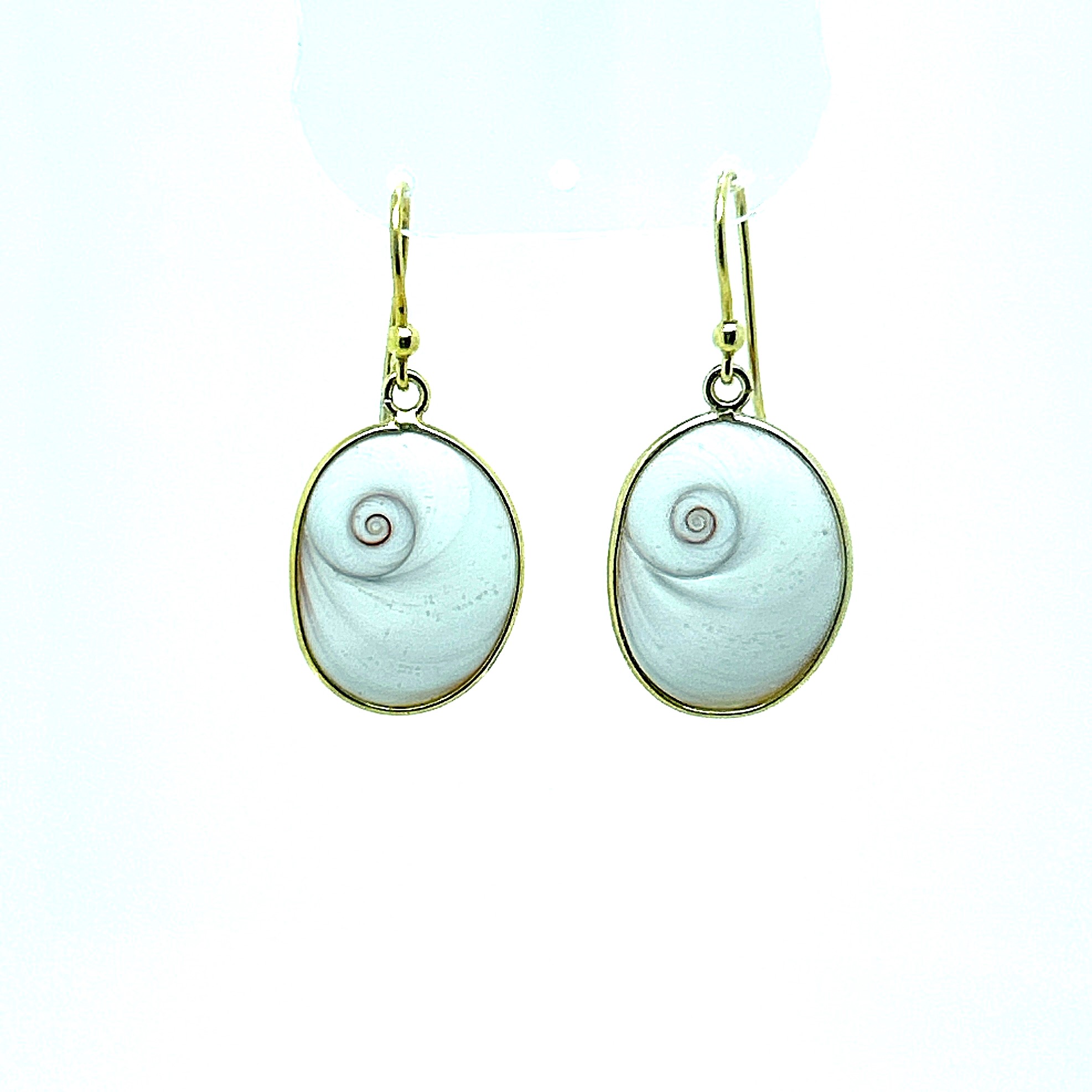Ces boucles d'oreilles sont composées d'un Œil de Sainte Lucie de Méditerranée, cerclé d'argent dorée. Réputé porter bonheur, ce bijou est disponible en deux modèles : grand et moyen. Les dimensions communiquées sont celle des opercules hors monture. Ces opercules étant des produits naturels, les dimensions ne peuvent pas être uniformes.