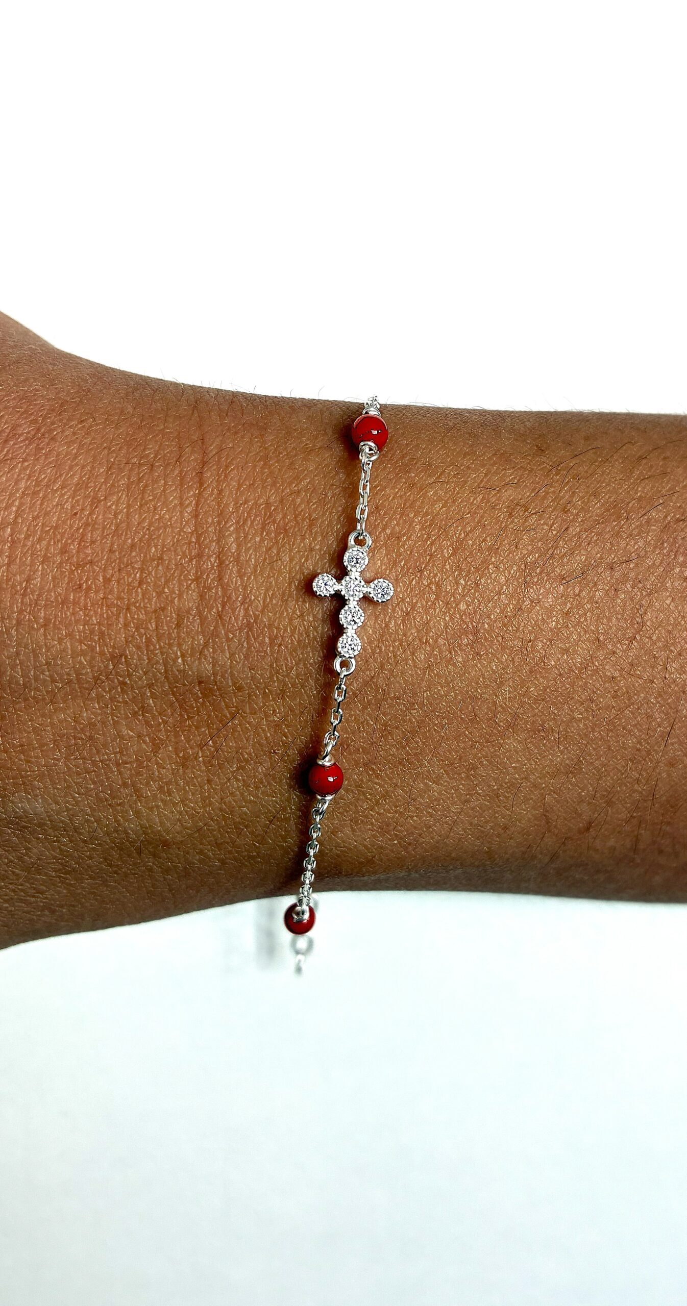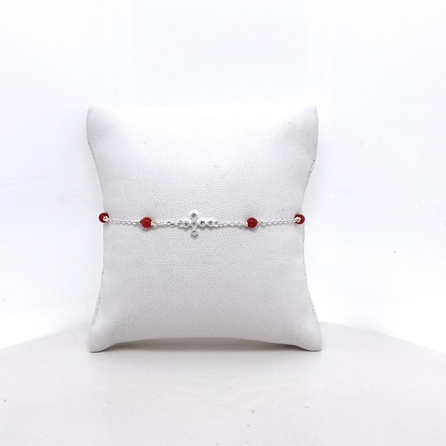 Bracelet croix Argent 925 et Corail Rouge