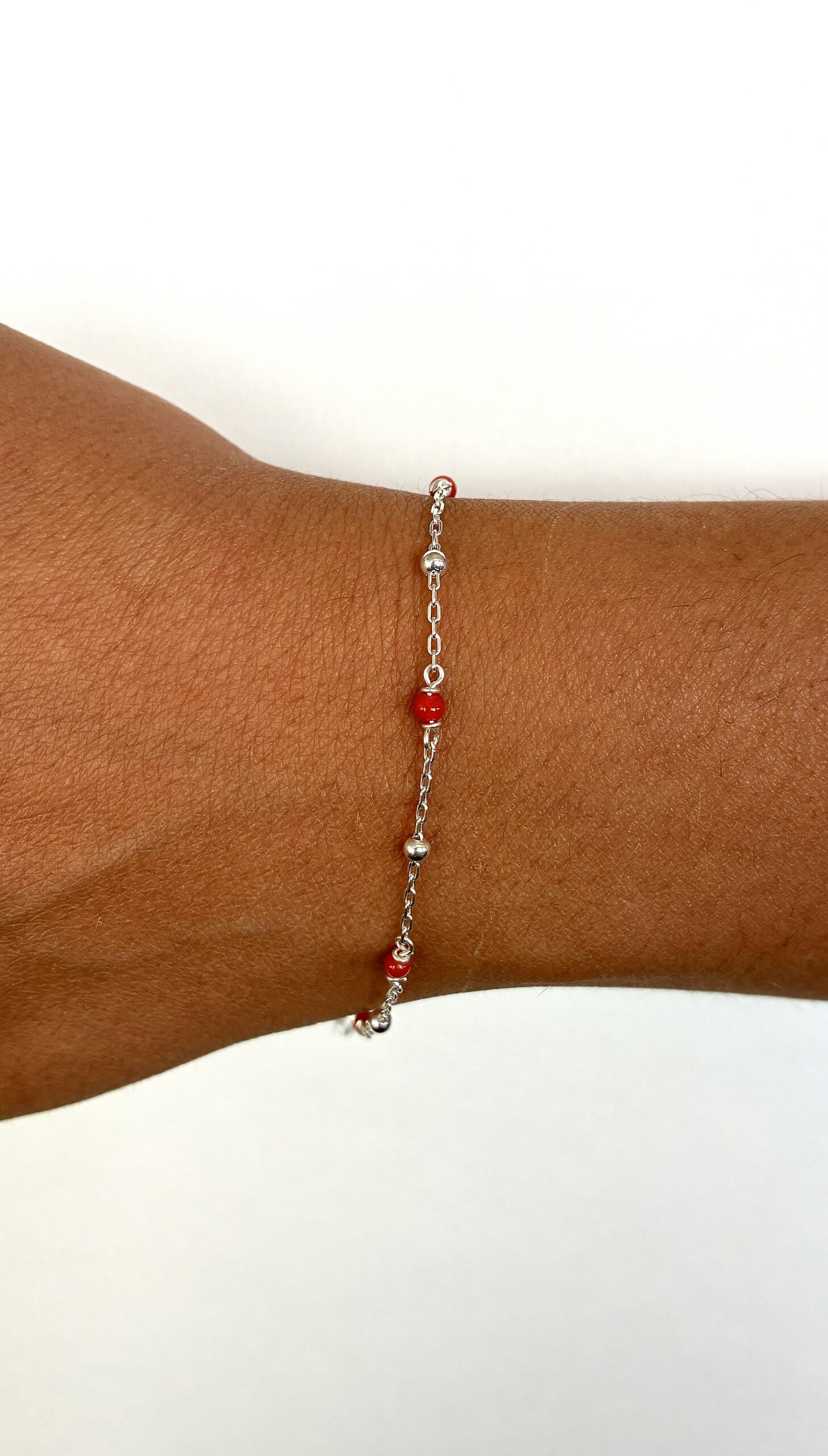 Bracelet en Argent 925 et Corail Rouge