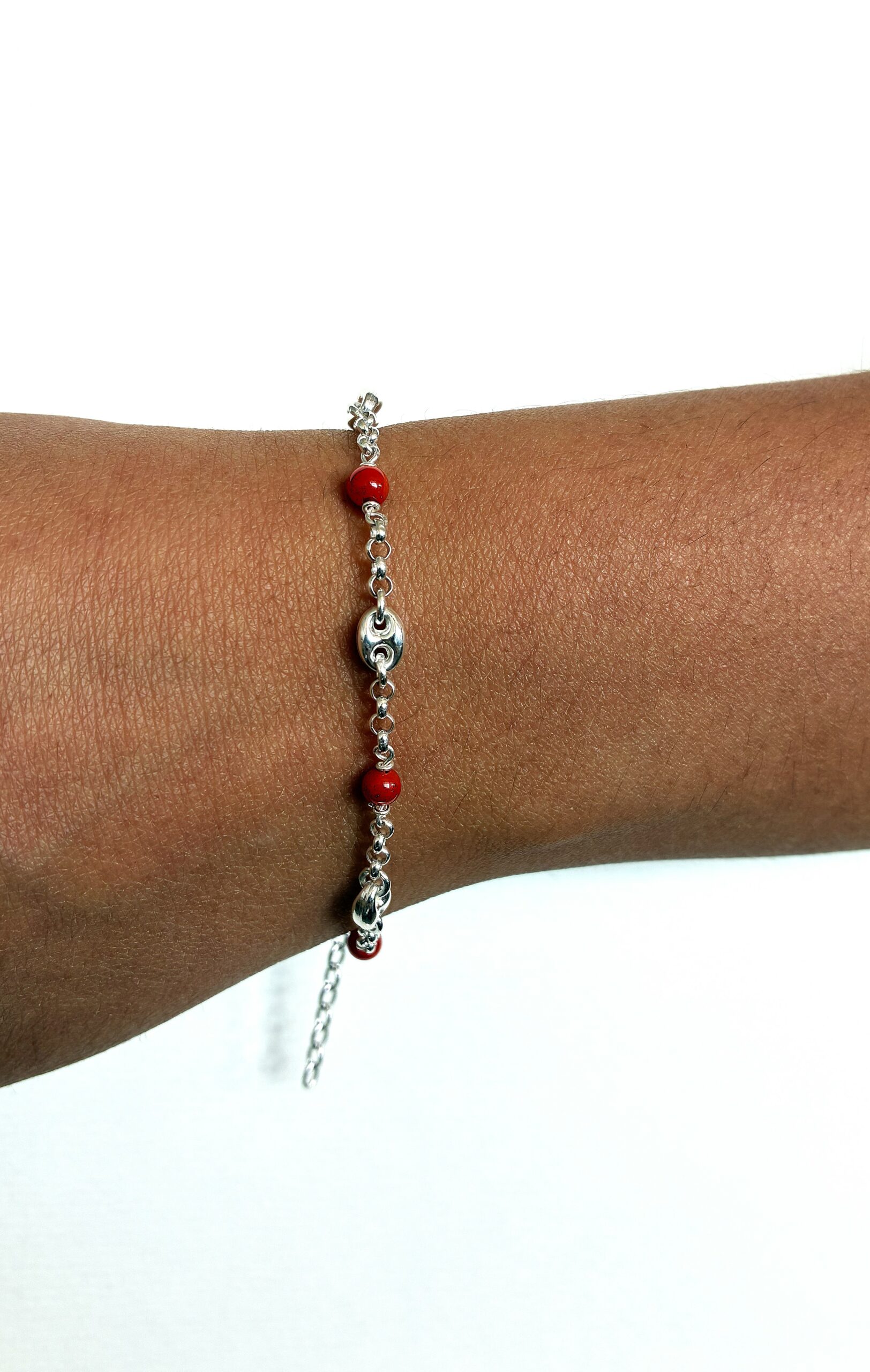 Bracelet Mailles marines et Corail Rouge