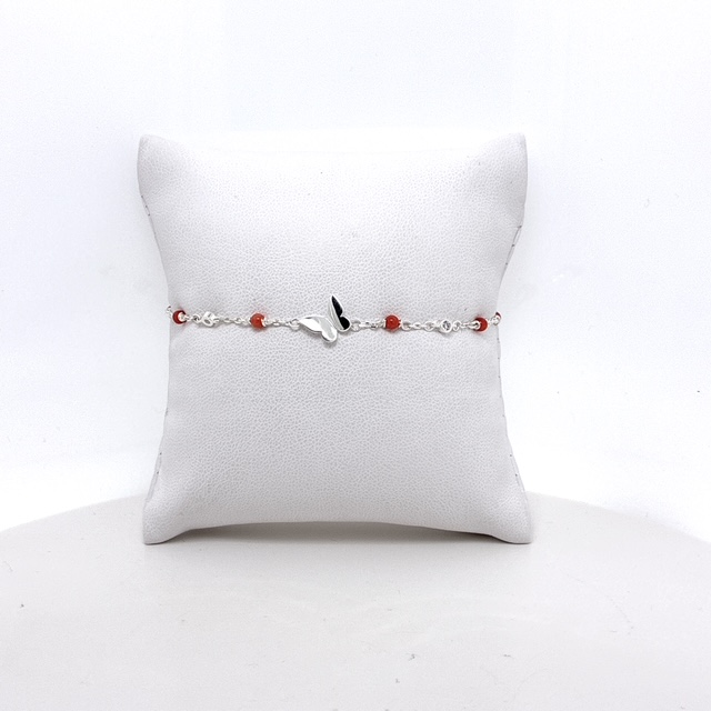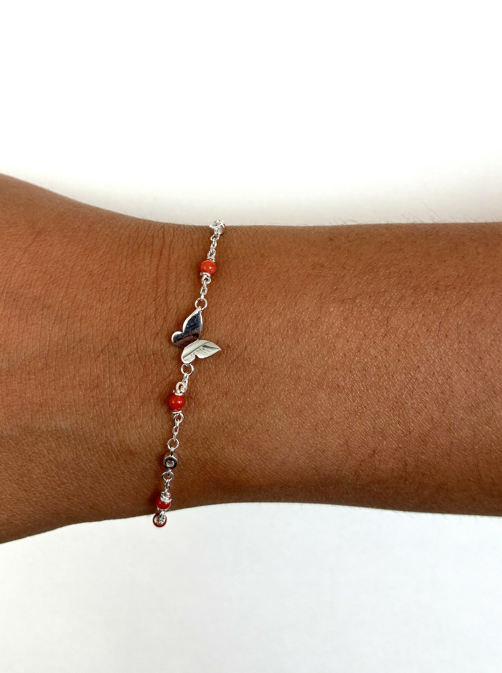 Au centre, un petit papillon en argent vient apporter une note délicate, ce bracelet est équipé d’un fermoir ainsi que d’un chaînette de rallongement de 3cm permettant une adaptation facile à votre poignet.