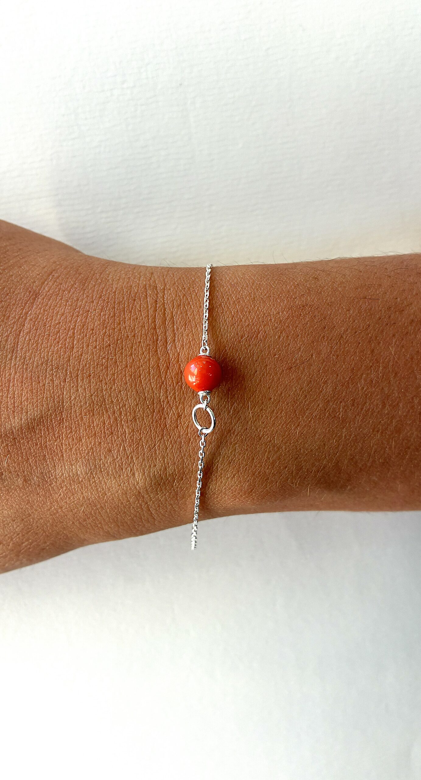 Bracelet argent et Corail, avec une perle.