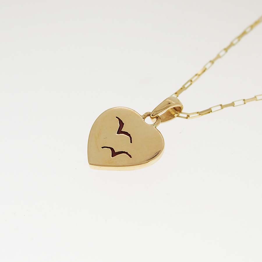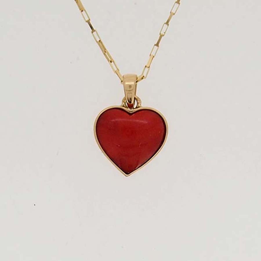 Pendentif coeur bombé corail rouge sur or jaune 18k