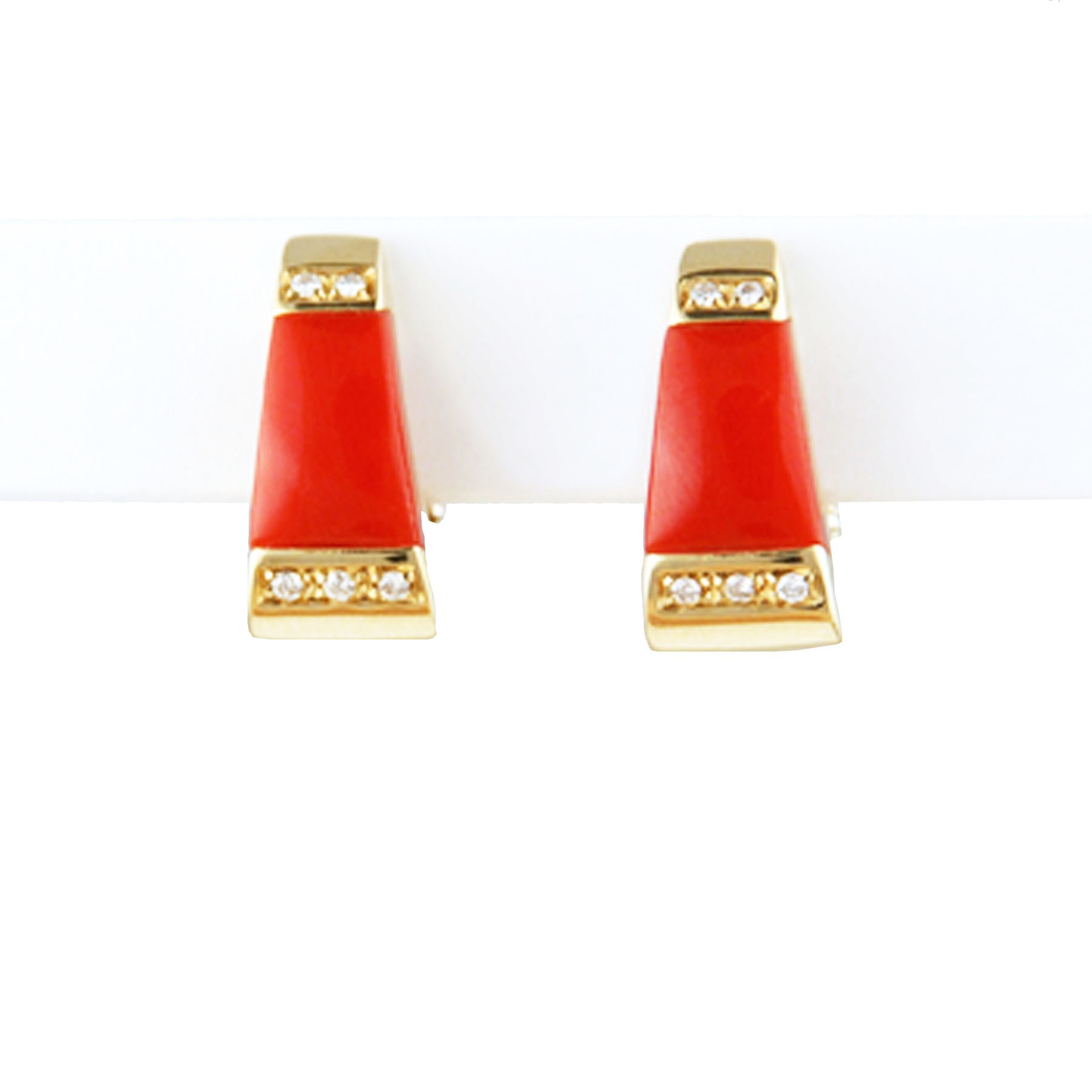 Clips or, corail rouge et diamants
