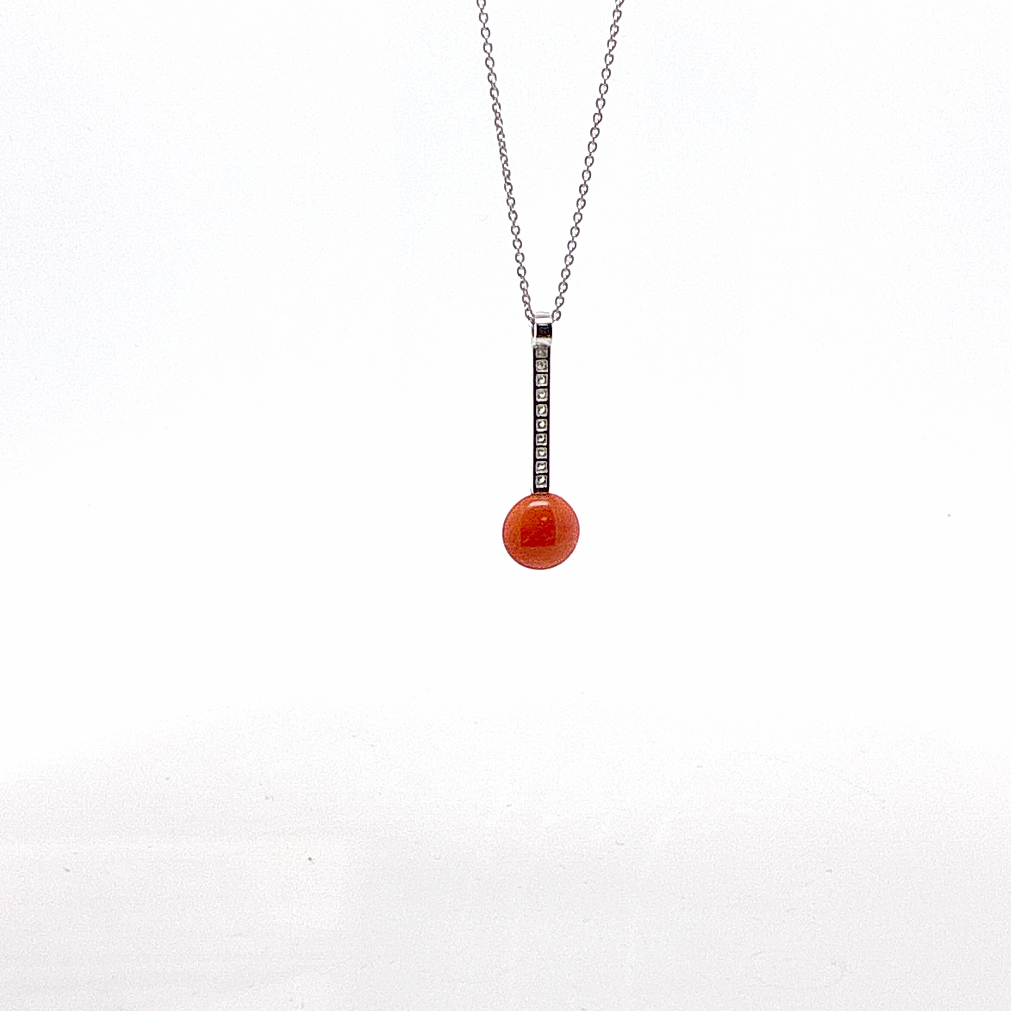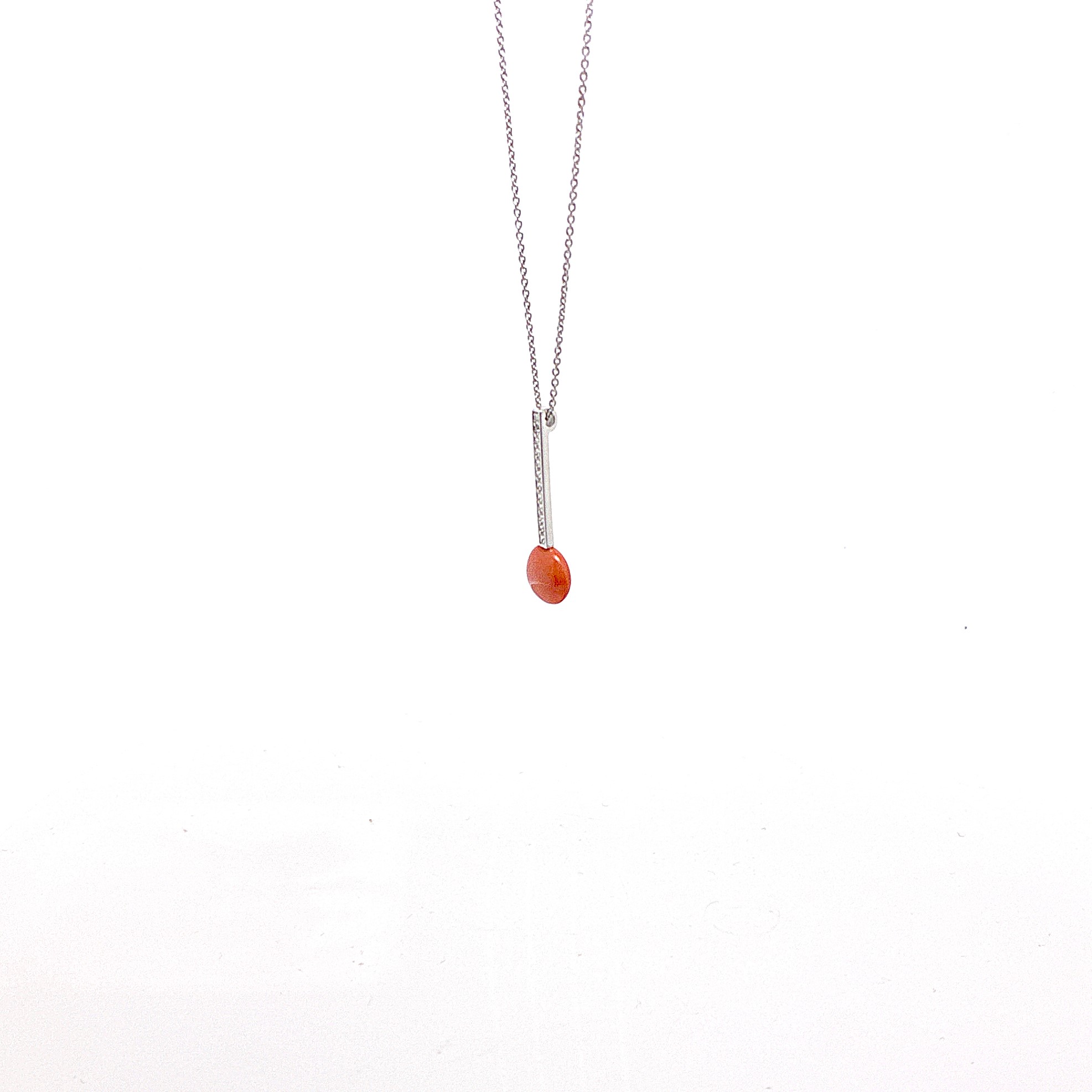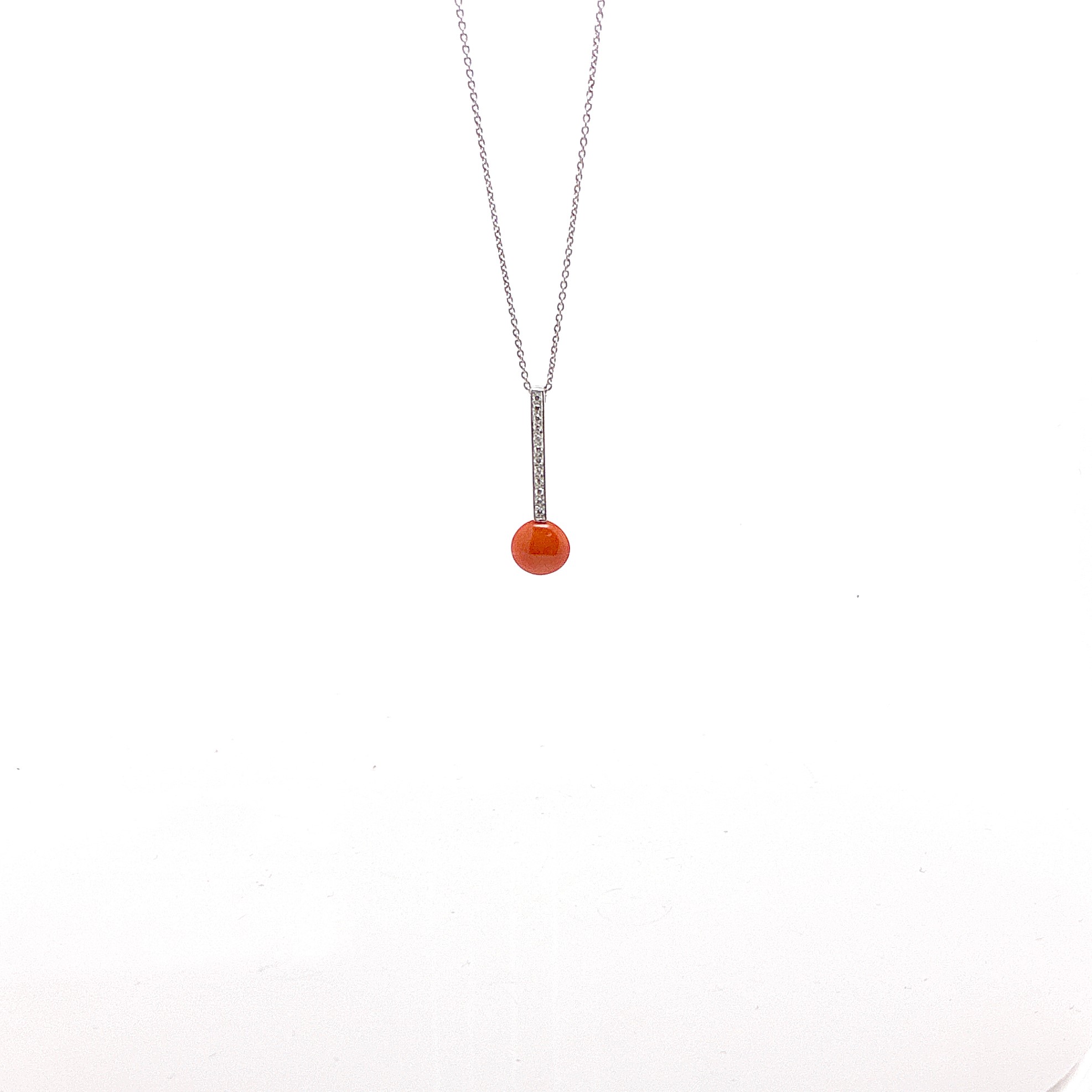 Tour de cou Or blanc 18k avec son pendentif corail rouge Corse avec ses brillants