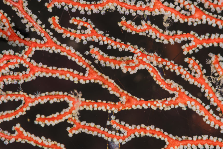 Le magnifique corail rouge est un Cnidaire à croissance très lente. Il vit dans des habitats rocheux ombragés en Méditerranée et Atlantique oriental, entre 5 et 700 m de profondeur. Depuis des millénaires, on utilise son squelette calcifié pour des bijoux, des amulettes et comme médication.